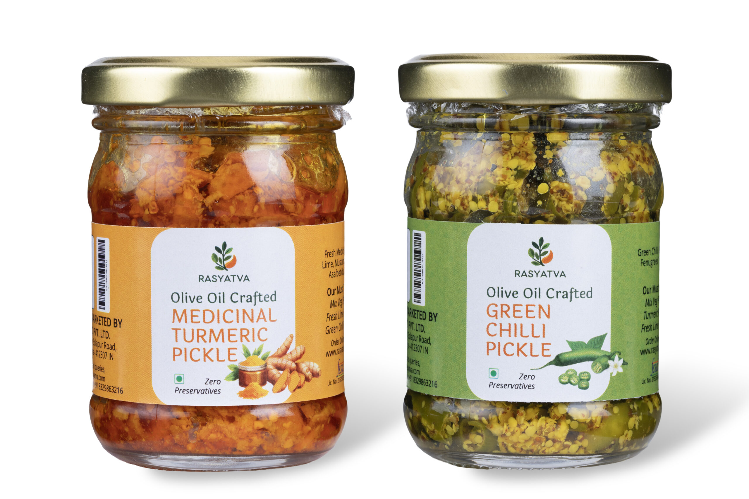 Combo 1 : Medicinal Turmeric Pickle + Green Chili Pickle